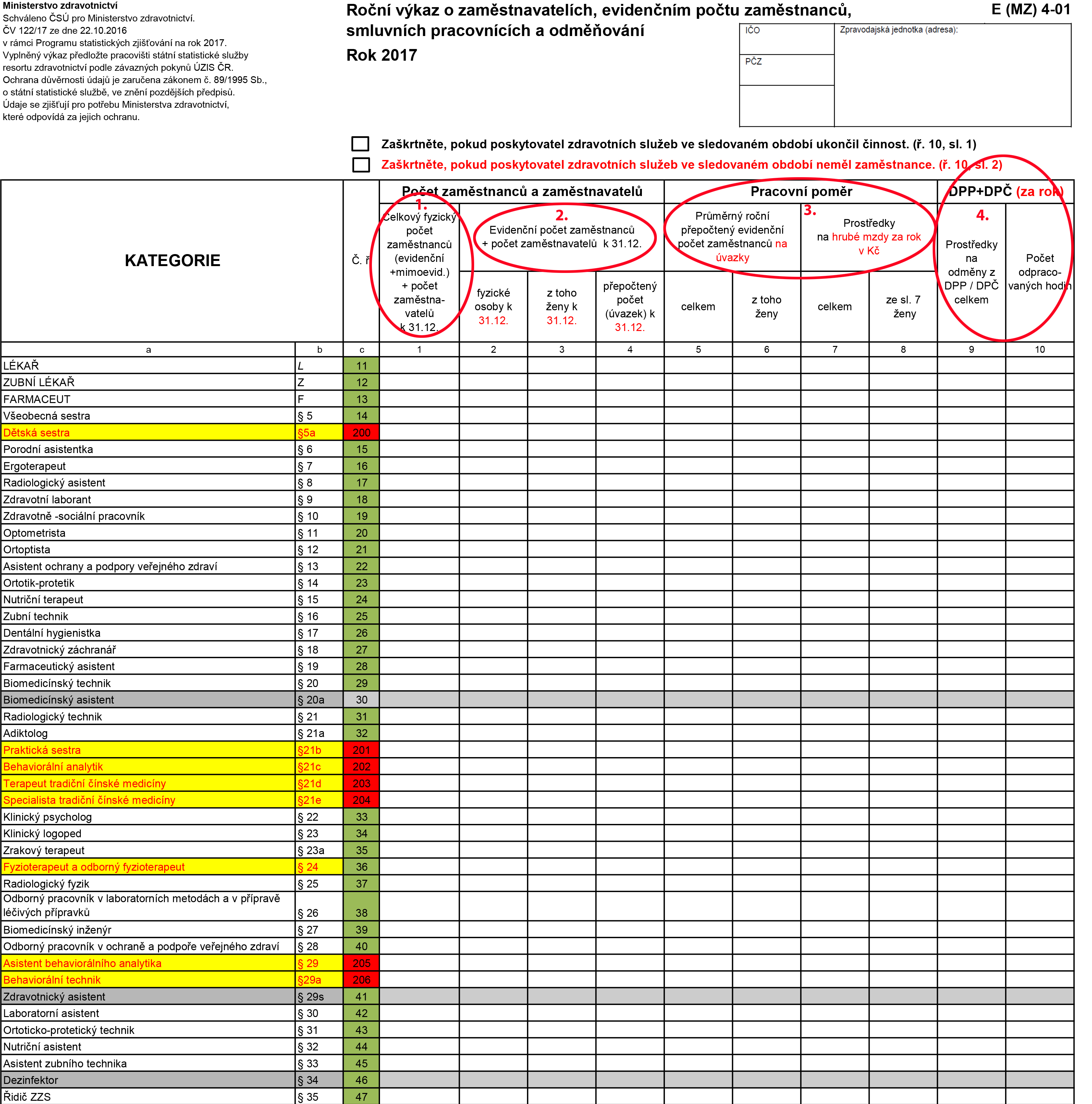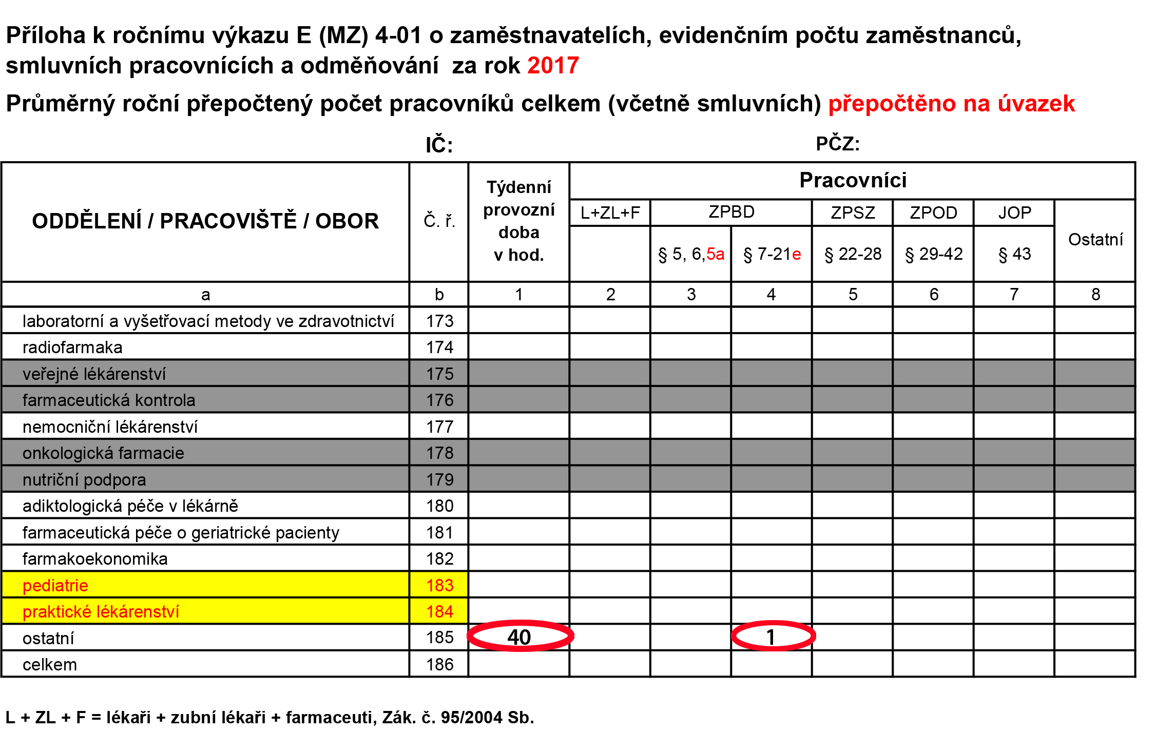 Sloupec 1 –         patří sem všichni i zaměstnanci na mateřské a rodičovské dovolené, pracující na dohody o provedení práce dále jen DPP, dohody o pracovní činnosti dále jen DPČ, studenti vykonávající praxi